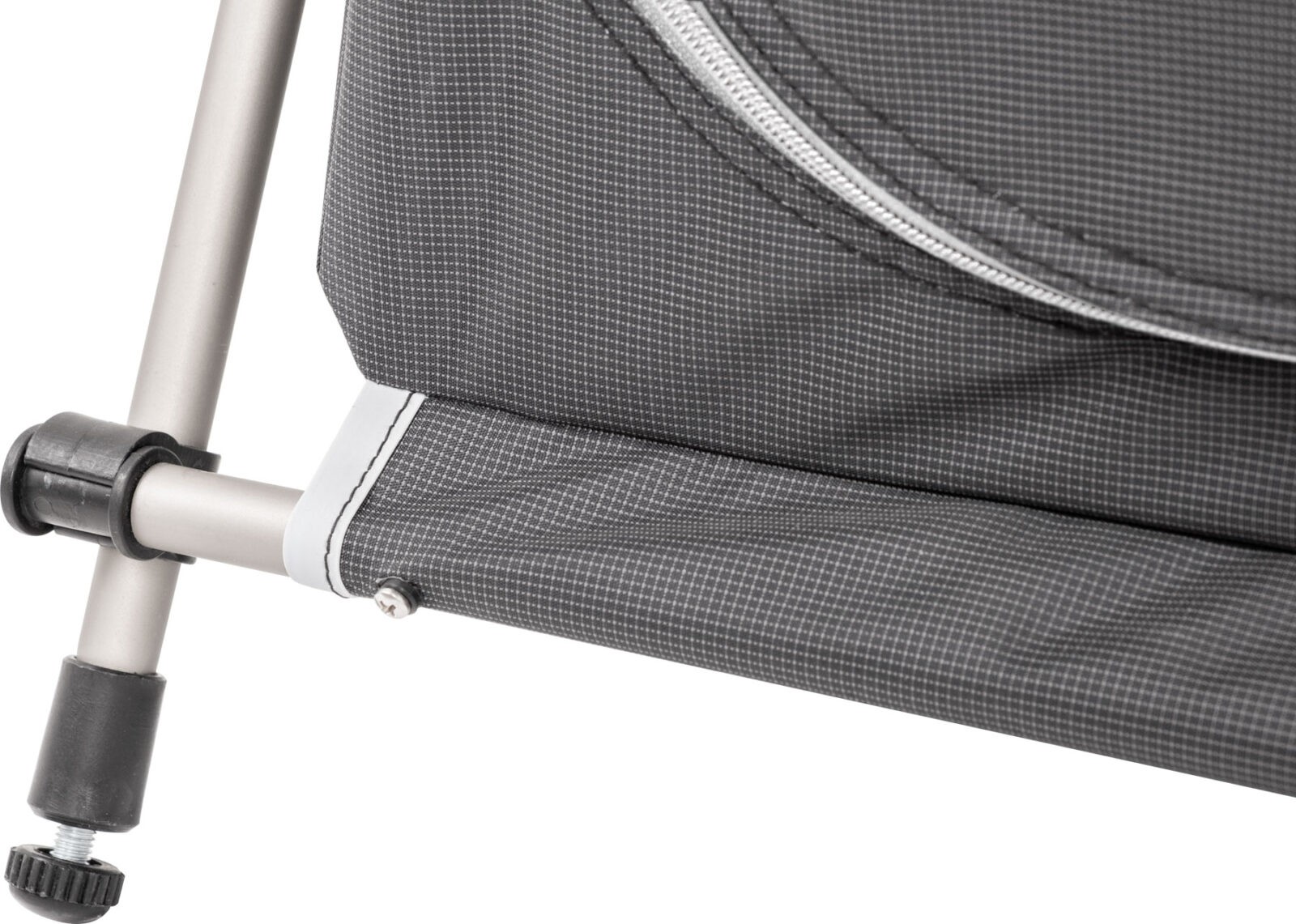 Technische Daten: Maße offen: 80 x 46 x H82 cm Packmaß: 84 x 38,5 x 37,5 cm Gewicht: 5,9 kg Material: Alu-Struktur mit Bambus/Alu Platte und Bezug aus 100% Polyester