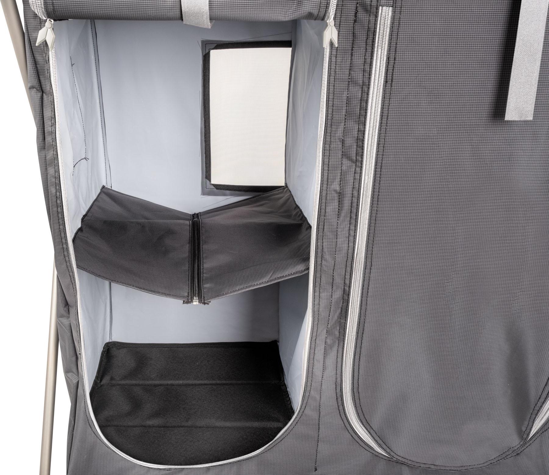 • Gewebeschrank mit 4 Innenfächern aus widerstandsfähigem Polyester