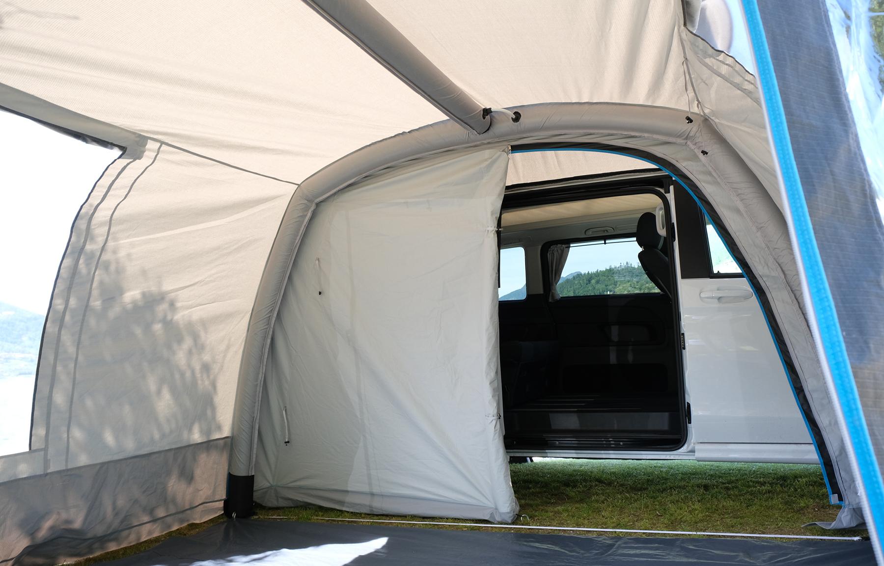 – großer Vordereingang, als Sonnendach aufstellbar ( 2 Stangen inclusive), komplett rausnehmbar, getönte Fenster mit Verdunkelung