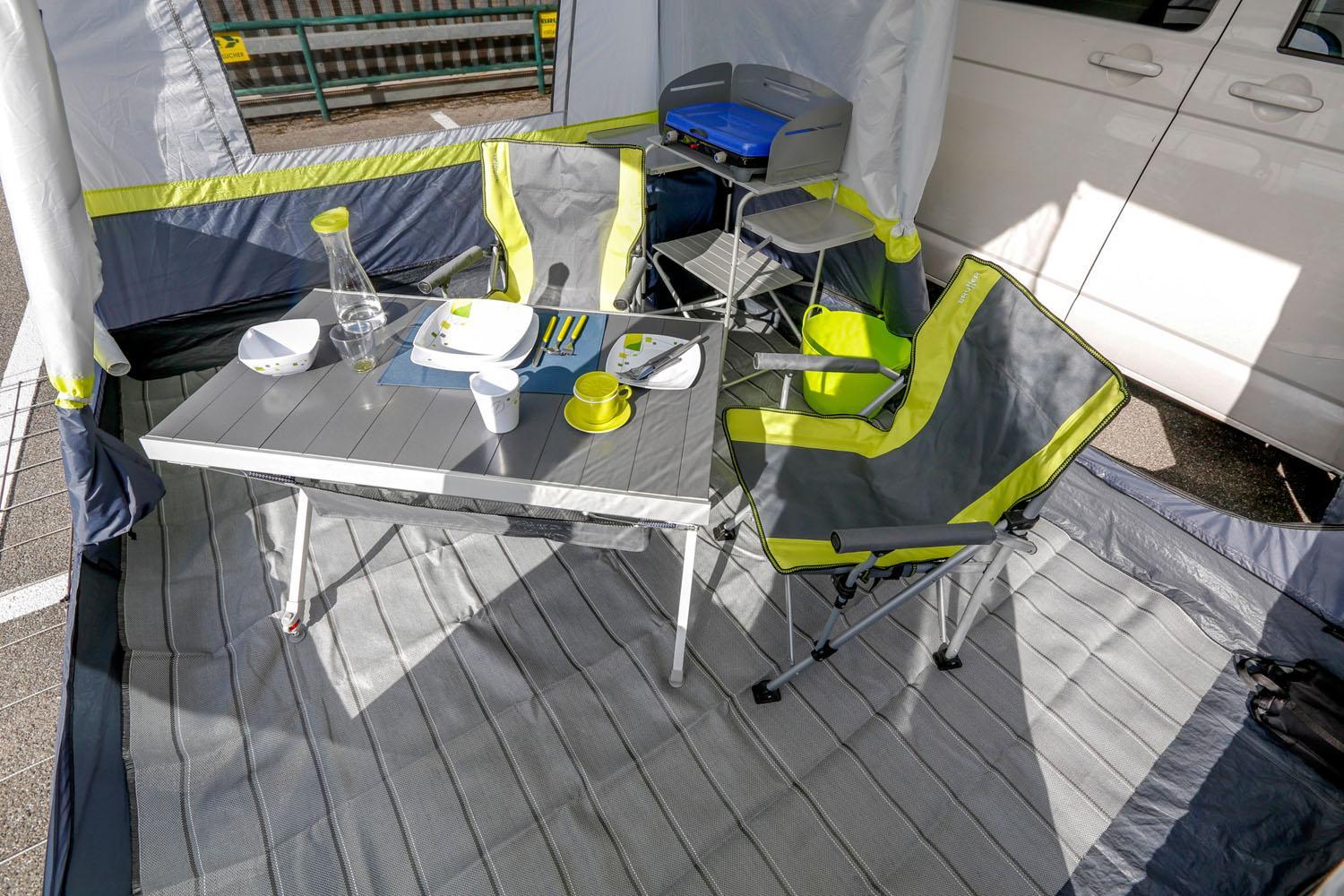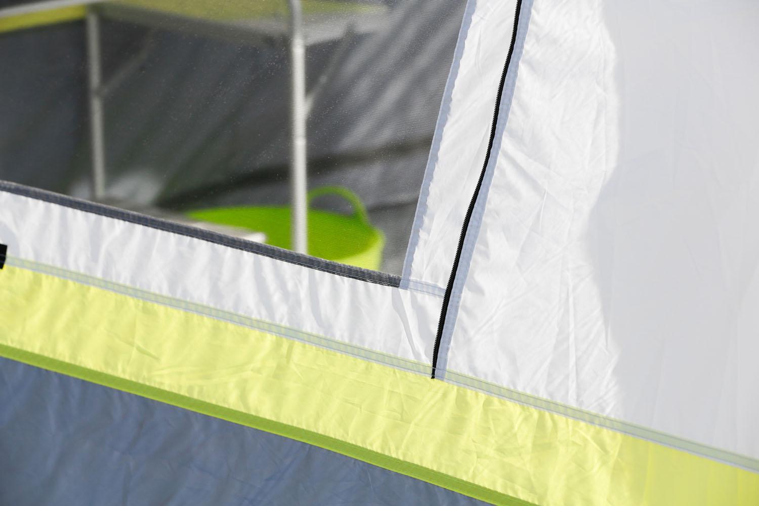 Innovatives Mobilzelt mit viel Innenraum und sehr guter Ventilation. Die bewährte , freistehende Rahmenkonstruktion sichert eine hervorragende Stabilität und ermöglicht problemloses Wegfahren ohne das Zelt abbauen zu müssen. 4 große, blickdicht verschließbare Panoramafenster bringen viel Licht ins Innere des Zeltes und ermöglichen gleichzeitig einen wahrhaft freien Blick nach Außen. Besonderen Komfort und Schutz bietet der fest eingenähte Zeltboden.