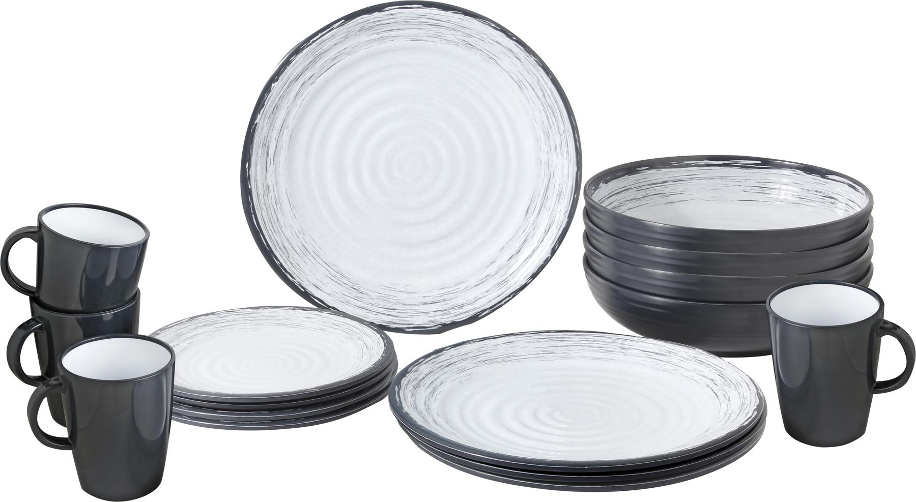 Das 16 teilige Set wird in einer praktischen Transportbox geliefert. Das Geschirrset ist aus 100 % Melamin, pflegeleicht, bruchunempfindlich und lebensmittelecht. Es ist spülmaschinengeeignet, darf aber nicht in der Mikrowelle verwendet werden.