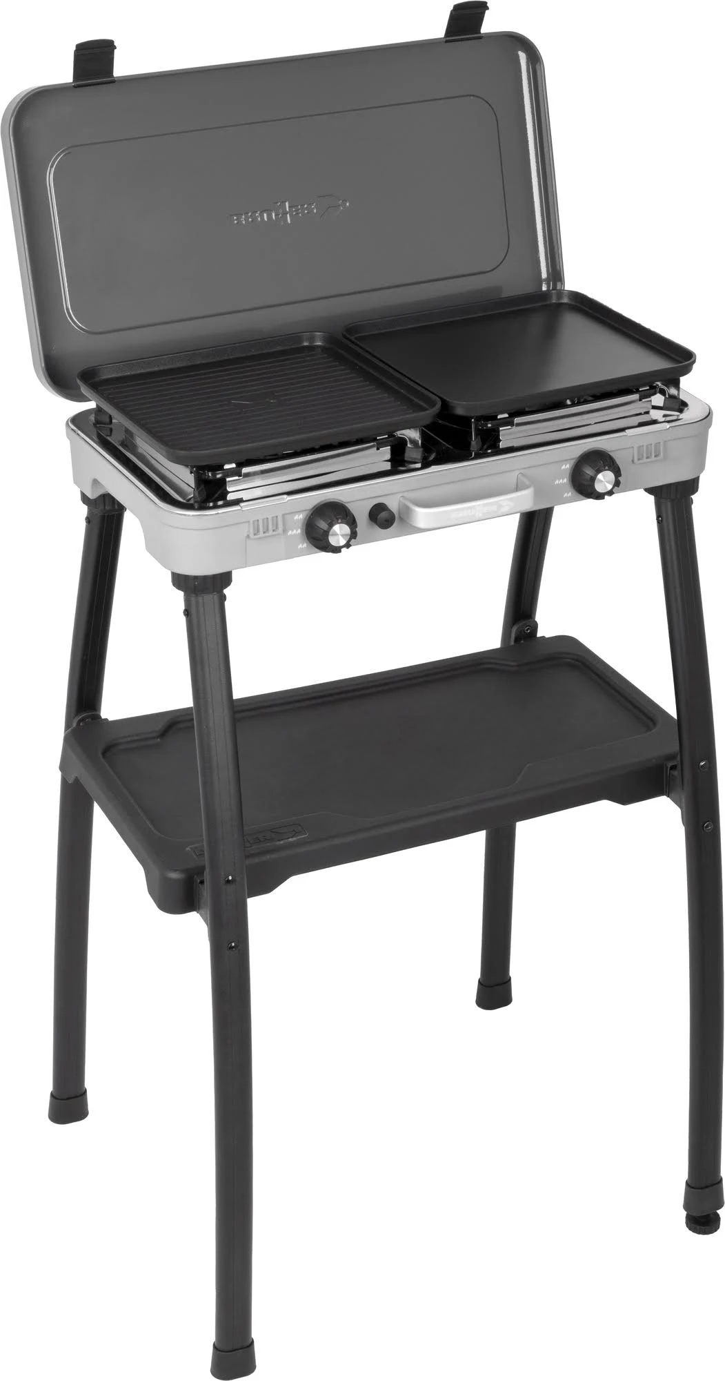 Mit einer Leistung von 2,4 kW verteilt auf zwei leistungsstarke Flammen bietet der Gaskocher ausreichend Power, um selbst anspruchsvolle Mahlzeiten schnell und effizient zuzubereiten. Egal ob Braten, Schmoren, Kochen oder Grillen – mit diesem Outdoor-Kochgerät gelingt alles mühelos. Besonders praktisch: Der Devil Kookmaster Standalone wird sowohl mit einer glatten Grillplatte als auch mit einer geriffelten Grillplatte geliefert, wodurch du zwischen klassischem Grillen und Braten wählen kannst.