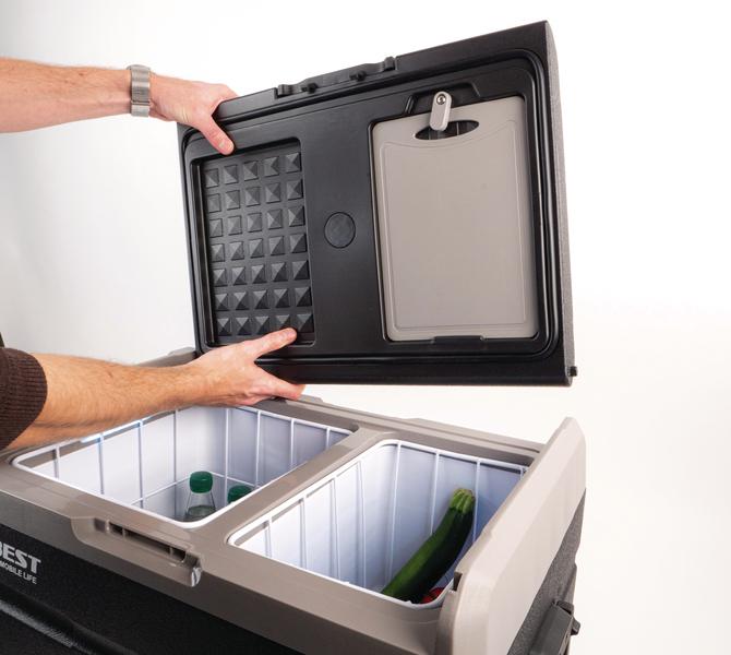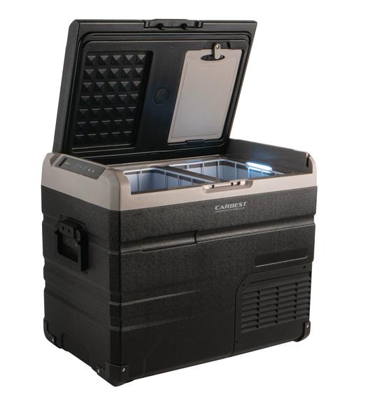 Die Carbest Kompressor-Kühlbox PowerCooler 45 Akku ist eine optimale Lösung für Fahrzeuge ohne, bzw. schwacher Bordbatterie, bzw. für Wochenendtrips oder ständigem Standortwechsel ohne Stromanschluss. Der optionale Akku kann zu Hause, während der Fahrt oder mittels Solarmodule aufgeladen werden und hat eine Laufzeit von bis zu 20 Stunden (je nach Einstellung).Sie hat ein Fassungsvermögen von 45 L und eine Kühlleistung von -20° bis +20°C. Ein dreistufiger Batterieschutz schützt die Fahrzeugbatterie.