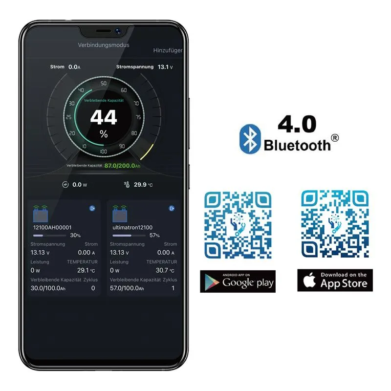 – Bluetooth-App 4.0, sowie Batterieschutz durch integriertem Batteriemanager