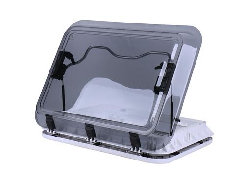 Diese hochwertige Panorma-Dachhaube ist mit oder ohne Zwangsbelüftung erhältlich, sowie bereits mit Insektenschutz und Verdunkelungssystem im Innenrahmen integriert. Vier integrierte LED-Leuchten mit EIN/AUS Schalter.