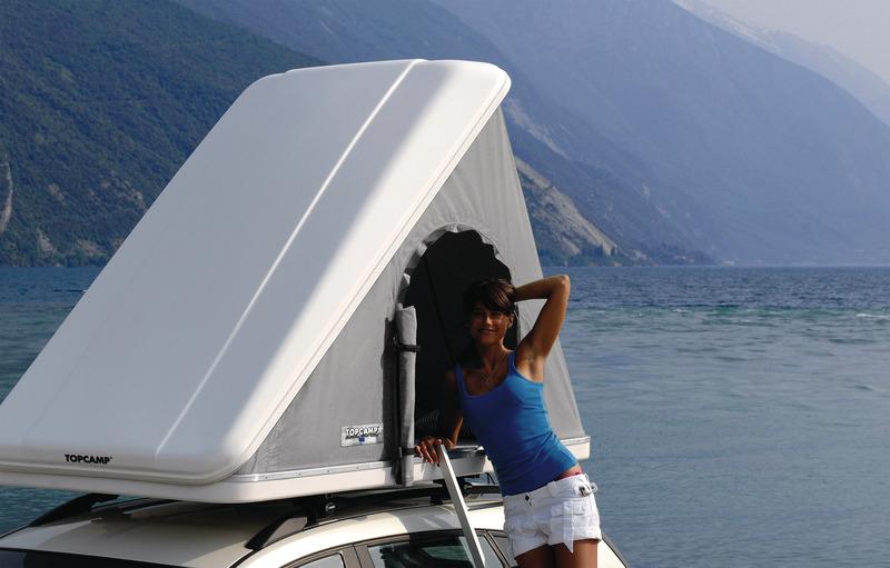 Tenda tetto auto in guscio duro vetroresina con apertura in paralello TOPCAMP triangolare small