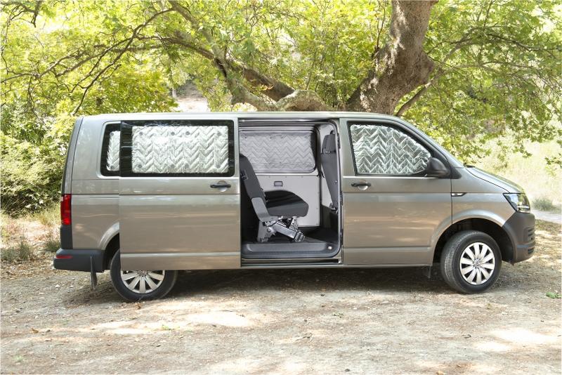 Set 8-teilig für Fahrerhaus und Wohnraum für den VW T5 und T6 / T6.1, kurzer oder langer Radstand. Komplettset für Fahrzeuge mit Heckklappe!
