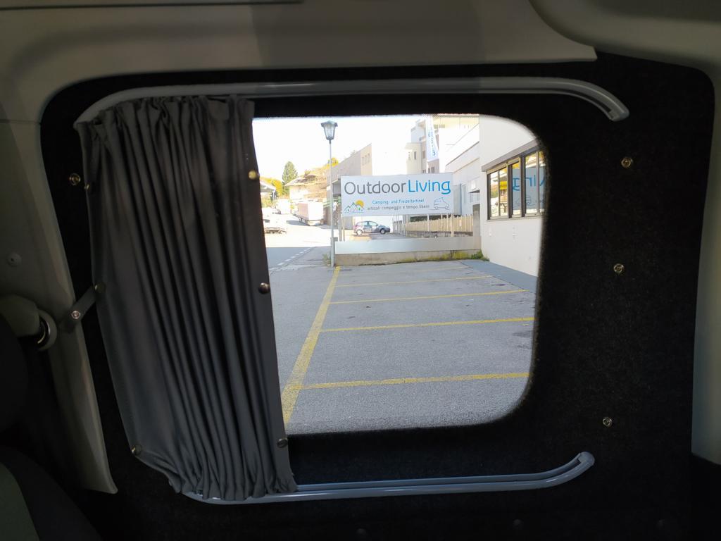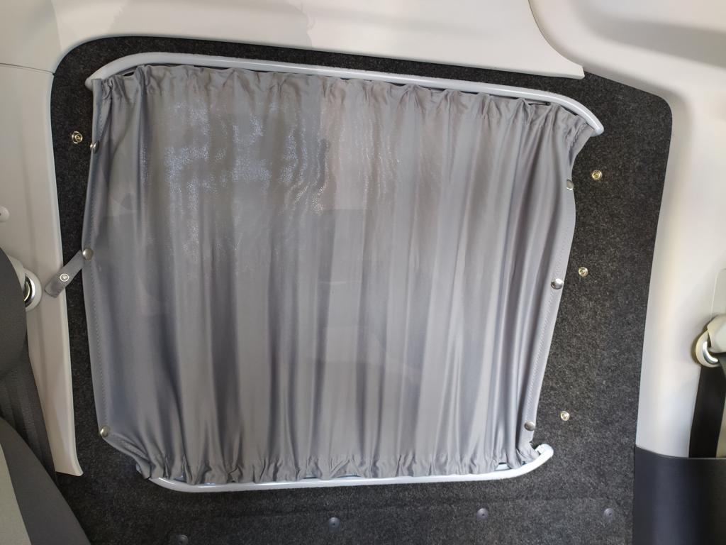 Die Vorhänge VW Caddy für den kurzen Radstand ab Baujahr 2012 sind die perfekte Lösung für alle, die ihren Caddy für Camping, Reisen oder den Alltag optimal abdunkeln möchten. Das blickdichte Vorhang-Set wurde speziell für den VW Caddy entwickelt und sorgt sofort für mehr Privatsphäre, ein angenehmes Raumgefühl und eine hochwertige Optik. Dank der doppellagigen Ausführung – innen grau, außen schwarz – entsteht eine elegante, moderne Atmosphäre im Fahrzeug.