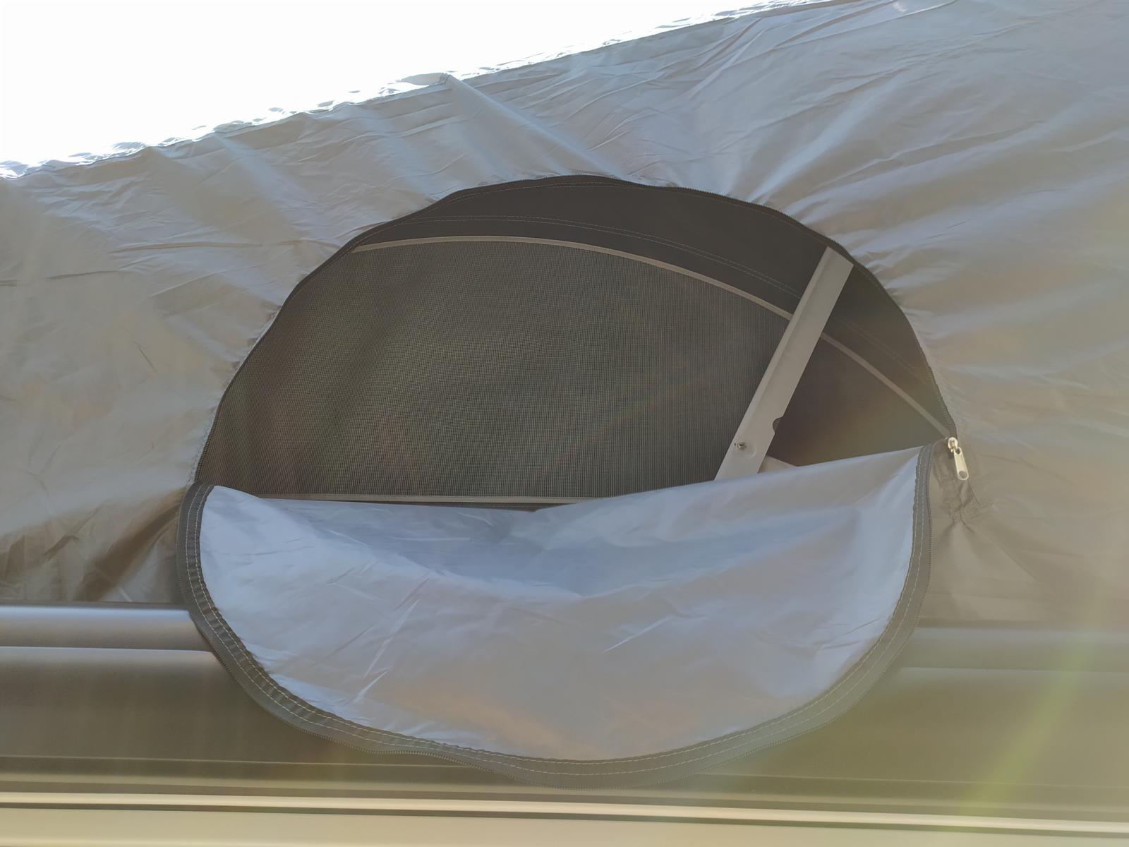 Die Haube verfügt über 2 Fensteröffnungen (seitlich), die mit Reißverschluss geöffnet werden können, so dringt Licht und Frischluft in das Fahrzeug.Die Montage der Wetterhaube erfolgt ganz einfach mittels Einzugkeder. Gleichzeitig dämpft die Wetterschutzhaube ein wenig die Aussengeräusche. Der Zeltbalg ist perfekt vor Wind und Wetter geschützt.