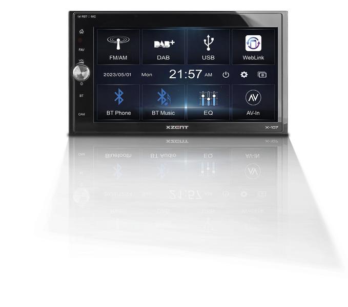 L’X-107, con il suo touchscreen capacitivo in vero vetro da 6,75″/17,1 cm, si adatta a qualsiasi camper con uno slot 2-DIN e offre le più recenti funzioni di intrattenimento. Il pannello frontale chiaro con quattro pulsanti a sensore e una pratica manopola per il controllo del volume dimostra che l’X-107 è un dispositivo davvero comodo. L’X-107 è dotato di un sintonizzatore DAB+ e di un sintonizzatore FM mondiale, mentre il Bluetooth consente non solo di effettuare telefonate, ma anche di trasmettere musica in modalità wireless dal proprio smartphone. Grazie alla funzione WebLink 2.0 integrata, è possibile utilizzare facilmente varie app dal proprio smartphone Android o iOS.