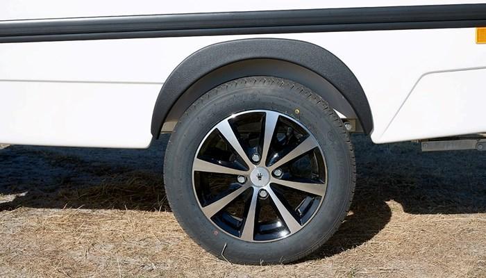 Besondere Details: komplett geschlossene GFK-Schale, Alu-Felgen, Matratzen, geschlossenem Stauraum unter dem Hänger, Moskitogaze in rechter Seite sowie in den Schlafkabinen
