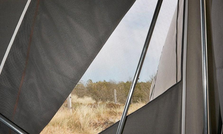 Außerdem kommt der Camp-let Passion in neuem Design und neuen Farben daher: urwüchsig und nordisch. Die Front und Seiten des Zeltes ist aus spinndüsengefärbten Isacryl hergestellt. Dieses Material ist atmungsaktiv, trocknet sehr schnell, ist pflegeleicht und die Farben bleiben sehr lange schön, wordurch der Stoff nicht ausgeblichen wird. Das Dach ist einseitig beschichtet und verfügt über eine Textilunterseite, das führt zu einer reduzierten Schwitzwasserbildung.