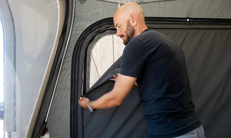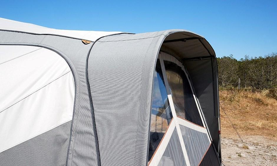 Vorteile: Abnehmbare/herunterklappbare Teile: Front- und Seitenteile komplett herausnehm- oder zu einer Verandalösung abklappbar Besondere Details: komplett geschlossene GFK-Schale, Alu-Felgen, Gute Belüftung durch Moskitogaze in der Front, in beiden Seitenteilen und an den Schlafkabinen (mit Außenöffnung), Küche rechts aus dem Zelt herausschwenkbar, integrierte Verdunklung, abgedunkelte Schlafkabinen, dunkle Matratzen; Sinnvolles Sonderzubehör: Anbau Passion mit integrierten Gardinen und Ventilation, seitliches Sonnendach (Küche), Frontsonnendach Passion, Front für das Sonnendach, uvm.